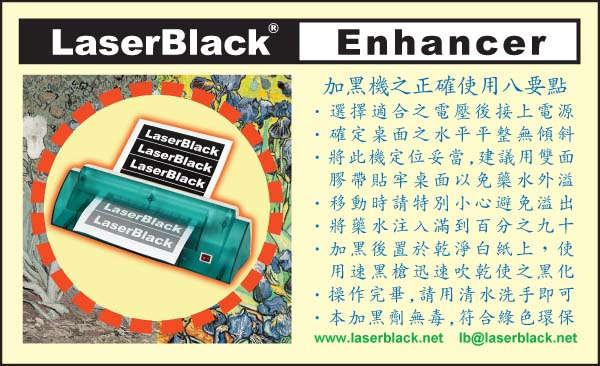故建议在经过加黑机加黑后静置2 ~ 4分钟后再行烘乾,其浓度可以提升到3.24 ~ 3.49亦即309% ~ 332%之加黑效果,用来直接曝晒各种的版材,均可以制版,没有问题。